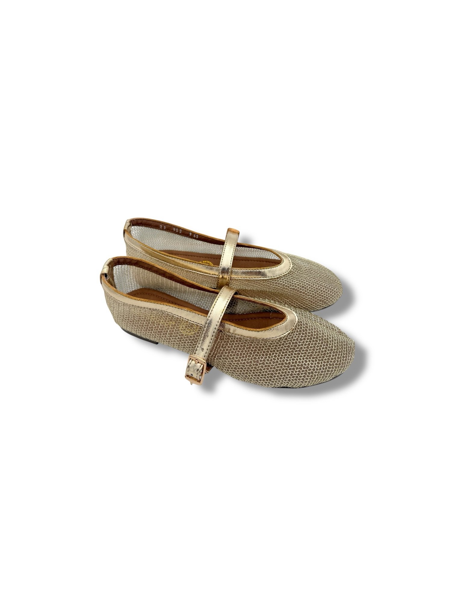 Mocasines, mules, planos, dorado, oro, malla, rejilla, bailarinas, ballet, balet, balerina, flats, flabelus, Mary jane, alia , mesh ,